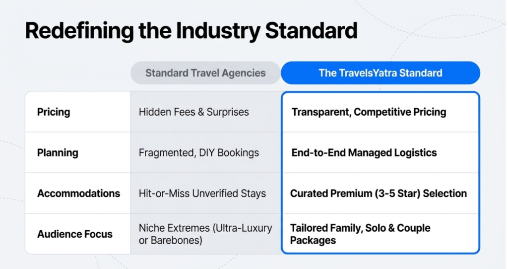 - Spiritual + Scenic Balance: The serene houseboats and meadows of Kashmir serve as the perfect restorative counterpoint to the intense yatra.